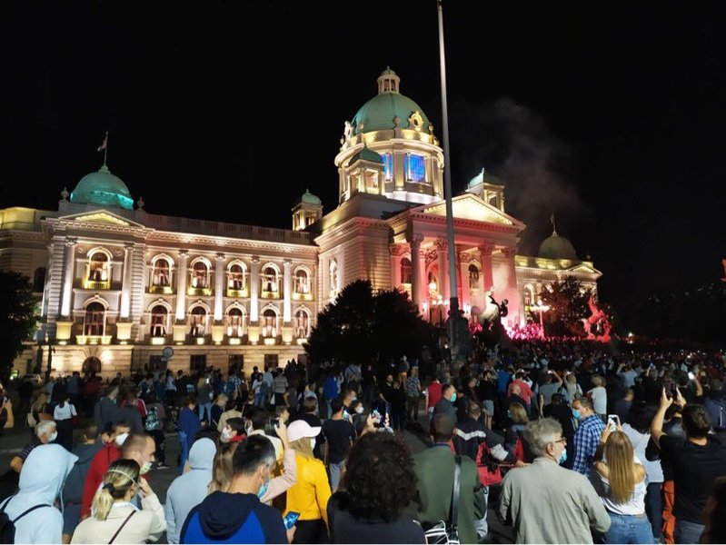 大幅度解封才滿1個月,塞爾維亞政府日前宣佈,將嚴格取締超過5人的聚會,「並將再度實施宵禁,以因應日漸上升的疫情。」朝令夕改的政策讓民眾大為不滿,人群在日前湧入首都的國會大樓前廣場,大聲疾呼要求總統武契奇辭職以示負責,警方則使用催淚瓦斯驅逐示威者,至少有43名警察和17名抗議者受傷。
