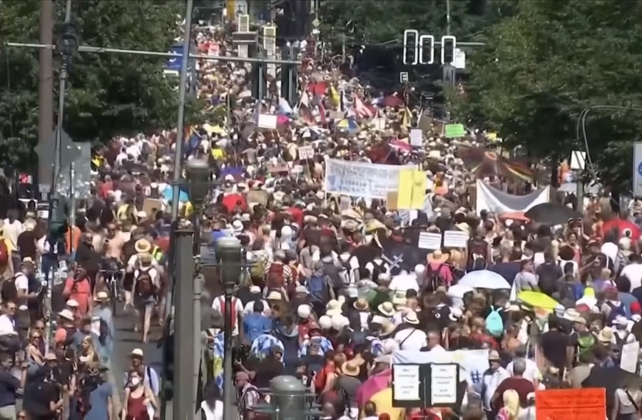據《路透社》報導,德國1日有逾萬人在柏林參與示威遊行,抗議政府為防止新冠病毒所實施的防疫措施,認為這些措施侵犯人民的權利和自由。據警方估計,現場約有1萬7000名示威者,包括自由意志主義者、立憲主義者以及對新冠疫苗持懷疑態度者,也有少數極右派人士持黑白紅三色的帝國旗幟參加遊行。