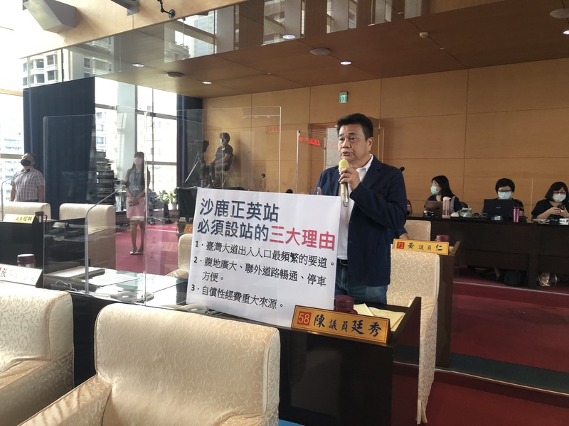 顏莉敏、陳廷秀等議員對於台中藍線捷運未在台灣大道及正英路口設站,要求市府正視該區域近3萬人口的需求。交通局估計服務人數僅2、3千人,此一評估有所偏誤。該一路口是當地重要交通往來道路,且附近腹地大、易停車、又有公車轉乘,未來可配合場站進行開發,是自償性經費的重要來源。
