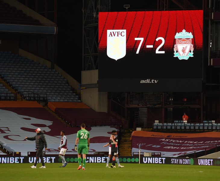 利物浦僅靠明星邊鋒薩拉赫打入安慰性質的2球,遭到牌面實力遠遜於自己的維拉狂轟,維拉頭號球星、年輕的英格蘭國腳格拉利什,單場參與5個進球,前鋒沃金斯上演帽子戲法,成為該隊88年以來首位能對利物浦獨進3球的選手。本役寫下明星教頭克洛普執掌兵符以來的最大慘敗,更是隊史57年以來首次單場丟7球,也是英超史上第一支單場丟7球的衛冕冠軍,利物浦球迷賽後紛紛在社群媒體上高喊是「球隊的恥辱」。