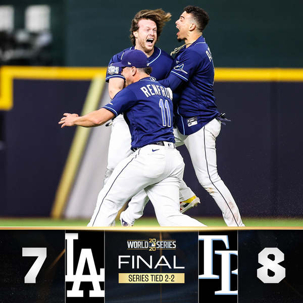 光芒本役打線發揮並不比道奇好,團隊狂吞14次三振,但總能靠著長打取分,跑回超前分的小將阿羅薩雷納仍是團隊中球棒最燙的選手,他單場4之3,包含一發全壘打、共跑回3分,25歲的他整個季後賽繳出9轟、高達1.289OPS,成為每任投手的惡夢,《CBS體育網》也補充,阿羅薩雷納這個季後賽的9轟也改寫大聯盟單一季後賽最多轟紀錄,而且他還有推高紀錄的可能。