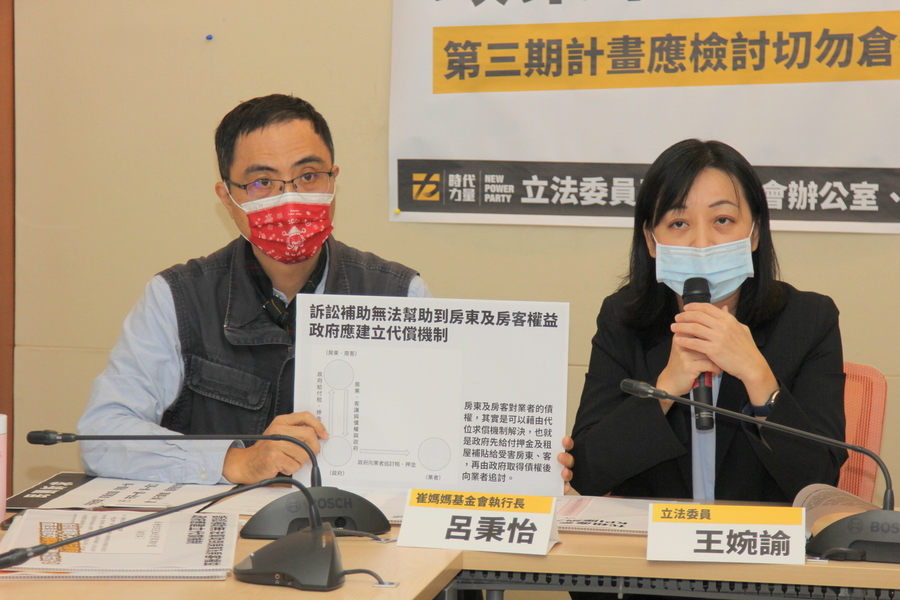 「營建署表示,將在第3期計畫動用住宅基金,透過訴訟補助金給與房東及房客向業者提吿。」王婉諭強調,房東及房客對業者的債權,其實可藉由代位求償機制解決,由政府先給付押金及租屋補貼給受害房東房客,再由政府取得債權後向業者追討,避免讓房東及房客獨自面對業者欺壓。