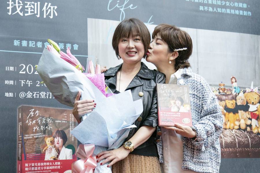 【台灣醒報記者臧品安台北報導】金鐘視后苗可麗7日身穿黑色皮衣配絲質長裙,出席個人首部散文作品集《原來,你在等著我找到你》新書簽書會。簽書會上,好姐妹王彩樺也特地出席站台,大讚苗可麗為「斜槓女星」,會演戲、繪畫及寫散文,又收藏許多娃娃,真的是多才多藝!
