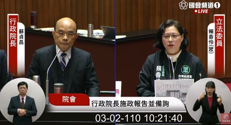 蘇貞昌首先說,會依勞保基金的實際狀況進行調整,但賴香伶不滿指出,她去年已經敦促勞動部要對此提出解決方案,也提出了3個方法,但勞動部後來都沒有回應,面對勞保基金將破產,她希望蘇貞昌與蔡總統能像過去年改一樣,成立改革委員會,或是召開國是會議解決問題。