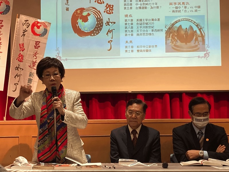 前副總統呂秀蓮於21日世界和諧傑出貢獻獎頒獎典禮後進行新書「兩岸恩怨如何了」發佈會,並暢談兩岸關係。提到目前嚴重的戰爭危機,而中、美兩大核武大國在談判桌上的爭吵,也象徵著台灣的處境越發凶險。