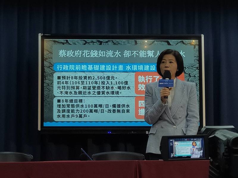 國民黨文傳會主委王育敏表示,立法院過去通過8年2508億的前瞻水預算,承諾在110年要增加常態性供水100萬噸、備援供水與調度能力200萬噸,但為何現在還會有如此嚴重的缺水問題?他希望經濟部儘快公布計畫執行相關數據,讓外界可以好好檢驗。
