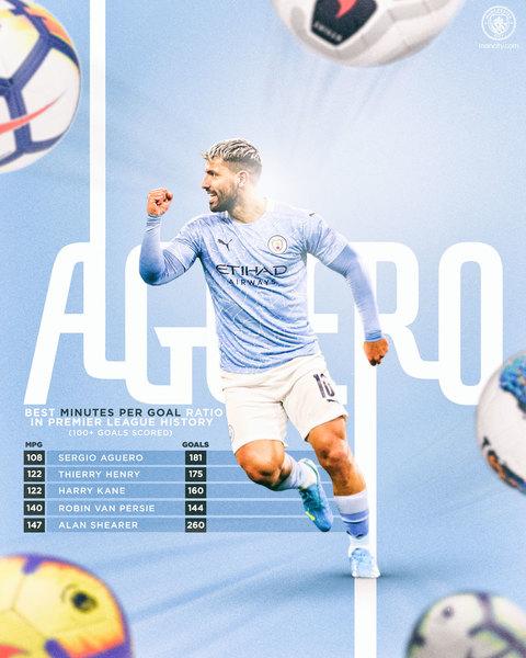 細數阿奎羅這10年的紀錄,包含非本土最佳射手(同時排名英超史上第4多)、史上最高效率射手(每108分鐘進一球)、史上最多次帽子戲法(單場進三球,共12次),也助曼城從11/12賽季以來的8年內拿到4次英超冠軍,構築曼城王朝。曼城主席穆巴拉克提到,阿奎羅把生涯23歲到33歲的巔峰年華都貢獻給球隊,他們將替他留下雕像紀念,並在聯賽最後一場主場賽事,替他舉辦告別致敬儀式,感念這位非本土最強前鋒。