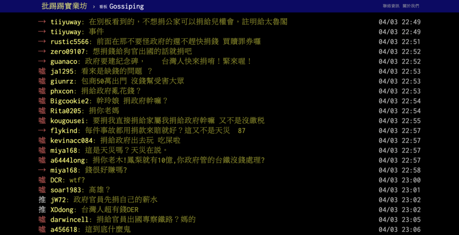 因此民眾質疑錢到了民進黨手中後,會被拿去支付人事費用、購買文具,或讓民意代表「出國遊玩」,浪費在與受害者無關的用途上,因此有網友說,「寧可直接匯給受害者,也不要轉一手經過政府」。