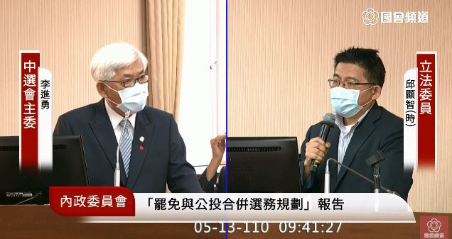 民進黨立委張宏陸則提醒中選會,防疫指引自從109年8月5日之後就沒有再更新了,李進勇表示會盡快處理。被問到公投是否符合《選罷法》中需要與罷免一同舉辦的選舉,李進勇表示不算,因此罷免不一定要與公投合辦,但最終方案因為罷免尚未成案,因此委員會還在討論中。