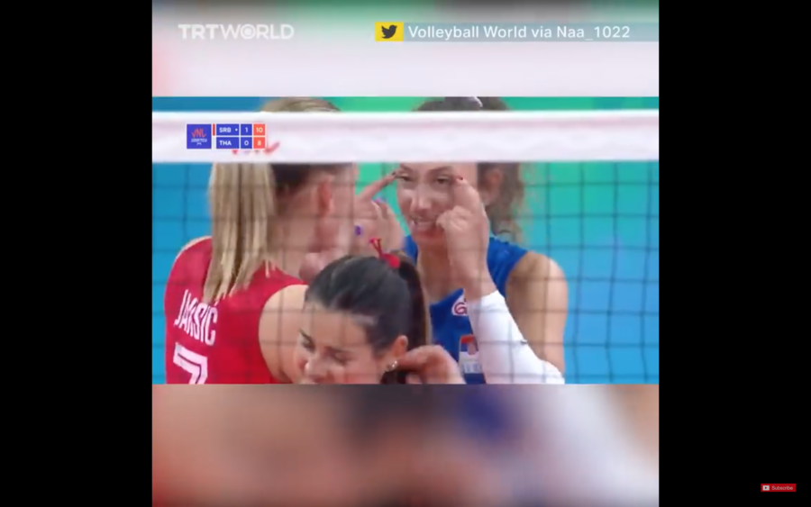 根據《英國廣播公司》報導,塞爾維亞女排1日在義大利對上泰國女排,塞國的久爾潔薇琪於比賽間做出拖曳眼尾的「眯眼手勢」,疑似嘲諷泰國隊小眼睛。因為她的舉動剛好被轉播鏡頭逮個正著,因此迅速在網路上引來一片撻伐。