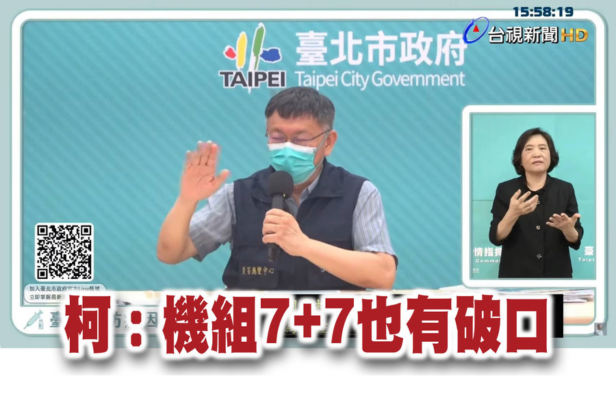 因此他也質疑之前7+7、5+9的決策過程,甚至認為相關會議紀錄也要去調查看看。柯文哲也擔心,目前台灣仍有5萬名沒有身分證與健保卡的移工,在萬華就可能有幾千名,這些人都可能是防疫的破口,他與環南市場前進指揮所指揮官王必勝討論過這個狀況,不過是否要優先施打還在研議中。