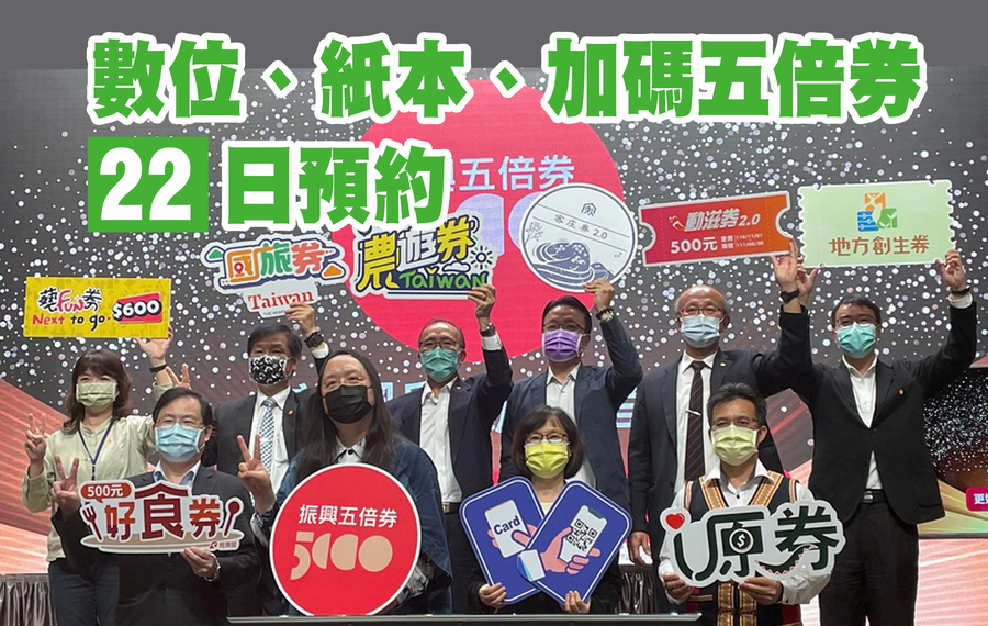 今年五倍券也加入加碼券,其中好食券限數位綁定的前 400 萬位民眾領取,其他 7 種加碼券(藝 FUN 券、動滋券、客庄券、地方創生券、農遊券、i 原券以及國旅券等)則將在 10 月 11 日至 11 月 5 日的四週期間進行抽獎,每週每天抽出一種加碼券,每週以中獎一次為限,民眾在預約時就能進行選擇。