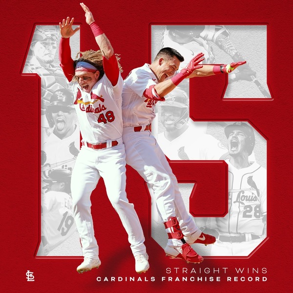 本月最火燙的球隊就是國聯中區的聖路易紅雀,他們在本月7日時,戰績並不突出,晉級季後賽機率低到只有2.8%,但接著卻迎來一波14連勝,25日已經追平隊史最長的連勝紀錄(1935年的7月)。根據《CBS體育網》報導,紅雀26日尋求的是打破高懸86年的紀錄,他們與小熊一路殺到第9局,靠著德永的全壘打打下保險分,最終以8:5力退小熊,收下獨居隊史最長的15連勝。