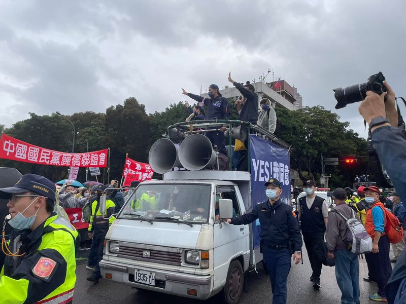 第二,遊行成員很多元。宣講結束後,國民黨遊行團隊開始踩街、往凱道進發,一路上也有許多民眾、學生加入,甚至有民眾攜家帶眷、共襄盛舉。勞工團體也同時在凱道前聚集人馬,秋鬥行腳團隊抵達後更高喊「我們終於到了」,並與國民黨遊行團隊大會師、總人數上看 6 萬人。