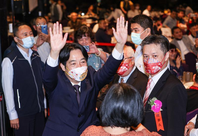 賴清德26日晚間出席「台北市宜蘭同鄉會2022新春團拜暨第19屆理事長、理監事就職典禮」,包括立法院長游錫堃、台北市宜蘭同鄉會名譽理事長楊忠雄、邱峯耀及宜蘭女婿國民黨立委蔣萬安等亦出席活動,現場大咖雲集。