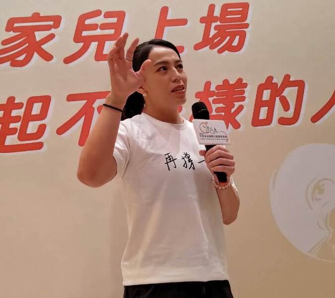 出身台東縣,在2020年勇奪奧運金牌的舉重選手郭婞淳,穿著「再撐一下」的T恤出席記者會,盼能如同舉起啞鈴一樣,將失家兒少也「舉」起來。她分享說,自己也是單親家庭,由外婆帶大,所以看到協會的工作內容時,心中就泛起許多漣漪。