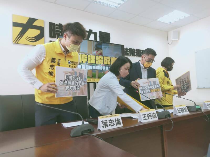【台灣醒報記者呂翔禾台北報導】「家長、老師該停課還是遠距上課,大家無所適從,政府需要統一全國停課標準!」時代力量立委王婉諭、邱顯智與2位地方議員參選人5日召開記者會,呼籲教育部與指揮中心制定學校防疫指引。蘆竹區參選人徐鈺雯說,學校因疫情負擔暴增,各縣市停課標準不一,政府應該制定統一標準,並給學校更多快篩劑。