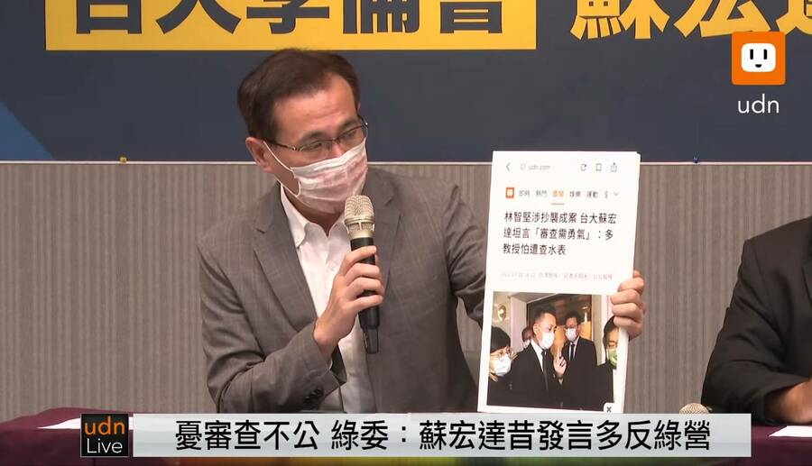 【台灣醒報記者呂翔禾台北報導】「台大社科院長蘇宏達立場偏藍,不應該作為學術倫理審查委員會的召集人!」民進黨桃園立委鄭運鵬、律師黃帝穎25日指控蘇宏達過往發言立場偏頗,不應該作為委員會召集人,必須迴避;黃帝穎也搬出《行政程序法》等法條佐證。但國民黨發言人林家興質疑,民進黨自己也是「未審先判」。