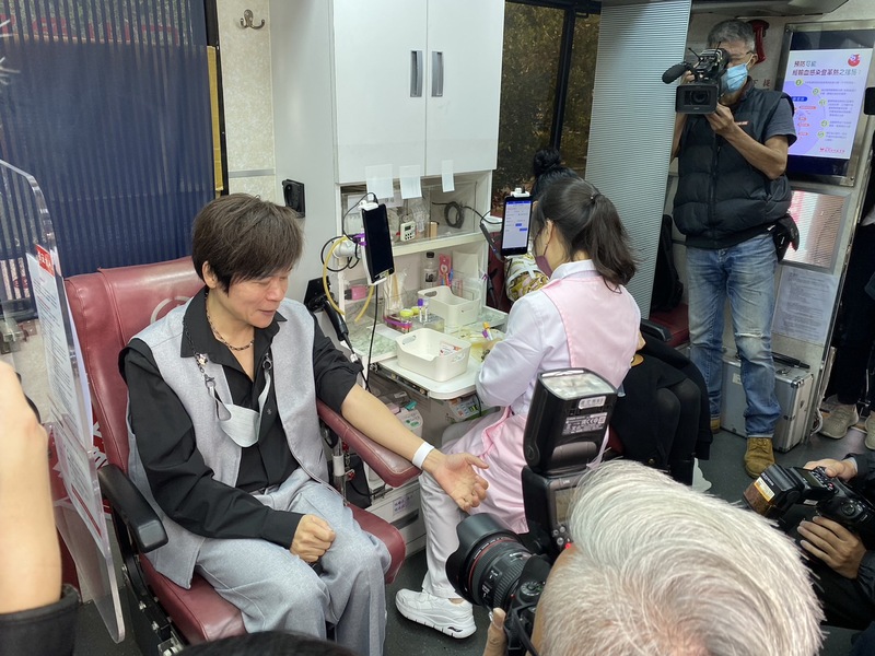 30日一早洪榮宏挽起袖子,遵照護理師的指示完成捐血(Photo by 蔡昀恬/台灣醒報)