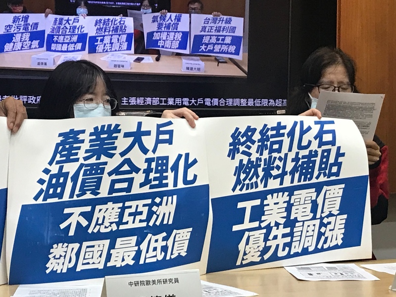 【台灣醒報記者簡嘉佑台北報導】「政府大撒幣還稅於民,卻買不到空污災民的健康!」台灣健康空氣行動聯盟研究員趙慧琳18日召開記者會表示,台灣長期提供低廉電價、油價給工業大戶,而忽略他們對環境的負面影響。台灣野蠻心足生態協會理事長陳憲政主張,調漲工業用電大戶電價,並終結對工業大戶的化石燃料補貼。