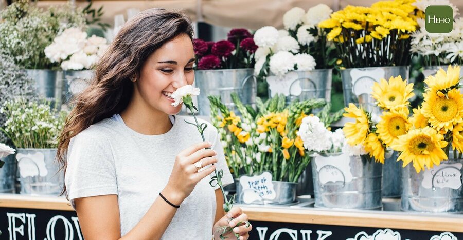 有位太太手裡抱了一束花。迎面來的張太太說:「你的塑膠花真漂亮呀!」這位太太趕緊說:「這是真花,不是塑膠花,妳聞聞看。」張太太一聞,歎說:「沒錯,是真花,有花的香味。」真花會發出花香,使人知其為真花。而花各有其香,聞其香味,知其為某種花。