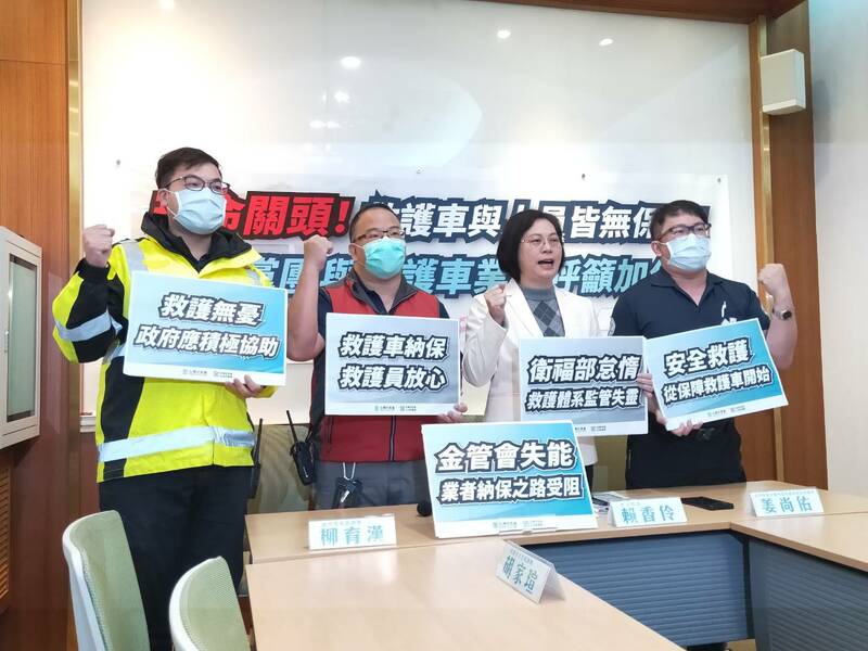 【台灣醒報記者呂翔禾台北報導】「救護車如果不投保乘客險與車體險,對業者、醫護人員與陪病家屬都無法獲得保障!」民眾黨立委賴香伶2日質疑,為何今年許多產險業者都不願續保救護車業者的車體險與乘客險?她呼籲衛福部要增加保險保障,金管會也要調查原因。對此,產險公會表示,會協助調查產險業者不願納保的原因,並進行調整。