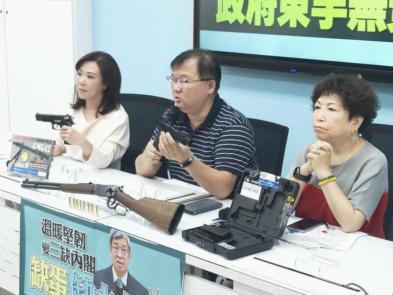 她指出,根據中正大學對全國治安的民調,民眾對國家治安的信心已經從66.5%下降到39.6%,呼籲民進黨政府不要推卸責任,應加強對改造槍枝的管束。游毓蘭則說,台灣的改造槍枝大多是以玩具槍出口後又賣回國內,但政府又未對玩具槍的顏色與材質進行規範,造成改造槍枝氾濫。