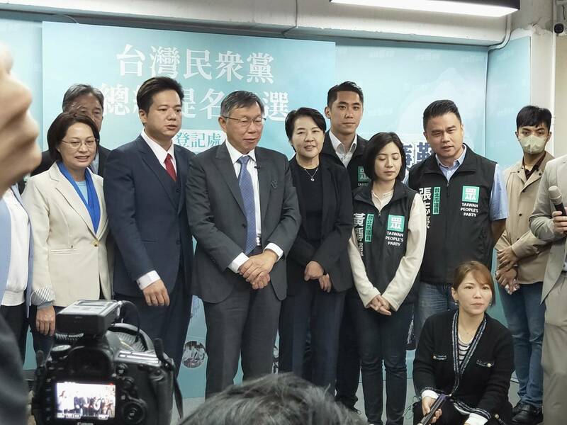 柯文哲在前台北市副市長黃珊珊、秘書長周台竹、黨內立委邱臣遠、賴香伶、陳琬惠,議員黃瀞瑩、林珍羽、張志豪等人陪同下登記參選,現場民眾黨員高喊「台灣的選擇,柯文哲!」、「唯一的選擇,柯文哲!」狹小的會議室被黨員與記者擠得水洩不通。