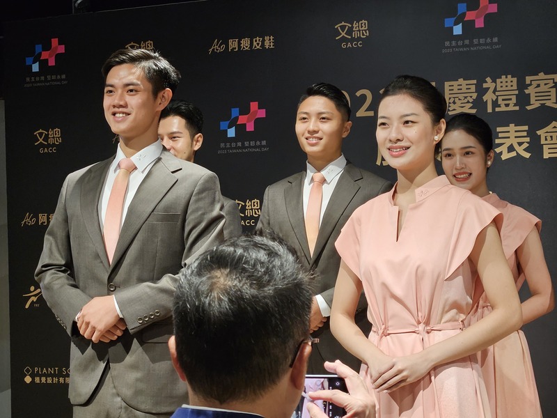 【台灣醒報記者呂翔禾台北報導】男禮賓員身穿棕黑色西裝、橘紅色領帶,女禮賓員一身橘紅色漸層連身洋裝、金色耳環,這是文化總會推出的國慶大會禮賓服裝。文化總會2日公布禮賓服裝主題為「五色鑾華」,「植覺設計」設計師呂秉泰解釋,盼透過台灣欒樹結果與落葉的顏色變化,象徵台灣的多元民主與包容。