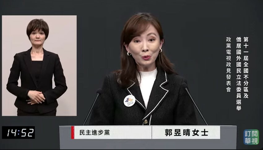 民進黨代表郭昱晴首先表示,民進黨不分區有3大共同政見,給予孩童更友善與安全的成長環境、深化台灣自由民主與最多元問政團隊。她說,不分區第一名與第三名分別是靖娟基金會執行長林月琴與還我特色公園行動聯盟理事長張雅琳,可以與民進黨其他立委共同提出更友善多元的照顧計畫。