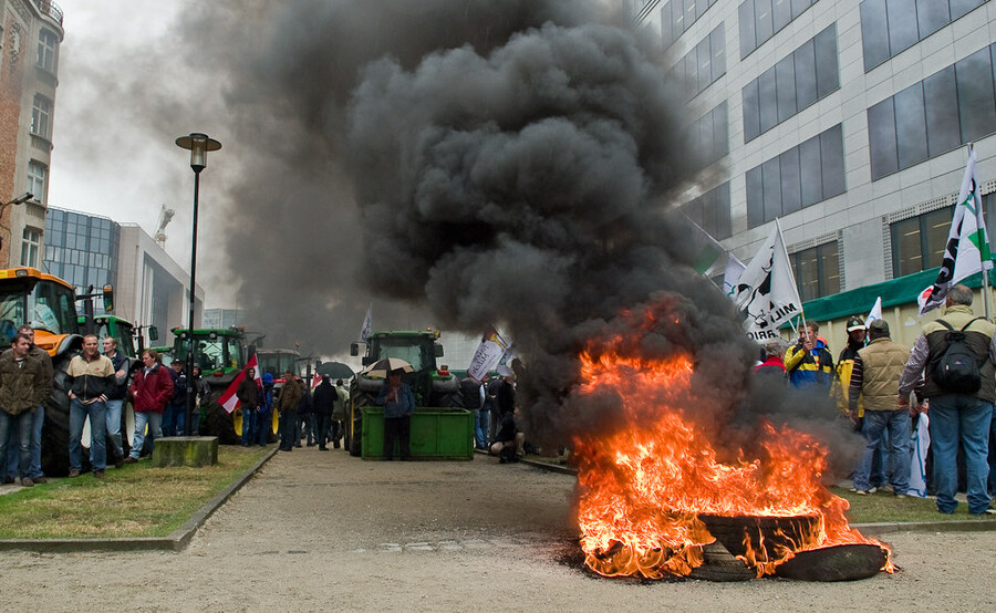 由於近年俄烏戰爭、通膨影響,燃料費、電力與肥料價格都高漲,讓很多農民吃不消,因此歐盟近日宣布減碳措施也引發農民不滿。雖然德國、法國相繼宣布減免燃料費,但農民抗爭仍繼續延燒,且歐盟為了協助烏克蘭對抗俄羅斯,也開放各國進口烏克蘭小麥,但波蘭、匈牙利、羅馬尼亞等國農民便希望政府阻止烏克蘭穀物傾銷。