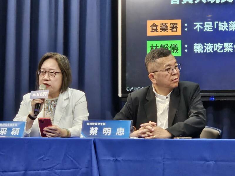 【台灣醒報記者呂翔禾台北報導】「因永豐化學違法停產,生理食鹽水、葡萄糖注射液短缺,政府應成立專責辦公室因應!」藥師沈采穎22日在國民黨記者會指出,很早就提醒食藥署有缺藥問題,如今仍未完全解決,盼成立專責辦公室因應;國民黨醫療委員會主委蔡明忠也指出,政府一直發給民眾過剩的快篩,如今還要繼續用永豐的食鹽水,需對外說明其安全性如何。
