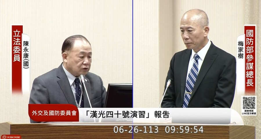 立法院外交及國防委員會26日邀請國防部部長顧立雄率參謀總長梅家樹報告「漢光四十號演習」規劃情形,並備質詢。梅家樹是時隔26年後、繼前參謀總長唐飛後第二位參謀總長到立法院備詢者。