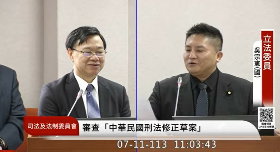 【台灣醒報記者呂翔禾台北報導】「今天討論的是《刑法》修正案,怎麼有立委還在提國會改革?」國民黨立委吳宗憲11日在質詢時批評民進黨立委吳思瑤,不討論本日協商法案就算了,還引用錯誤觀念。他說自己過去主張訴訟「武器不平等」,是因為國會改革聲請釋憲的4個機關訴訟標的不同,認為憲法法庭不應該一併處理。