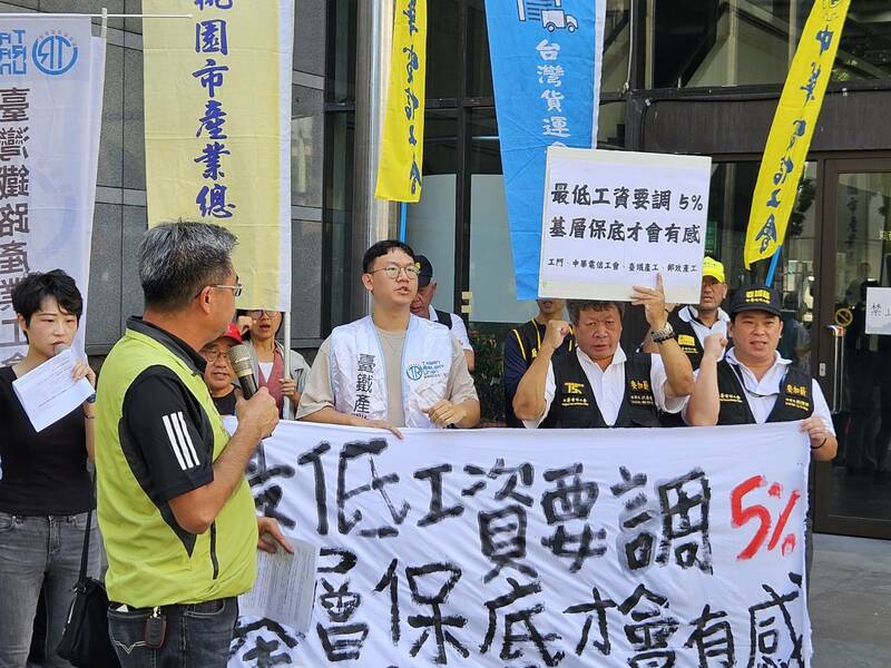 【台灣醒報記者呂翔禾台北報導】「今年經濟成長佳,政府應調漲5%基本工資,並建立調薪公式!」工鬥團體4日於勞動部門口抗議,呼籲政府應該調漲5%基本薪資。新高市產總理事長何政家指出,前總統蔡英文曾承諾要調到3萬元,今年若不先調5%至28884元,未來恐難達到目標。台鐵產業工會秘書長朱智宇也說,政府可從國營事業基層先調漲。