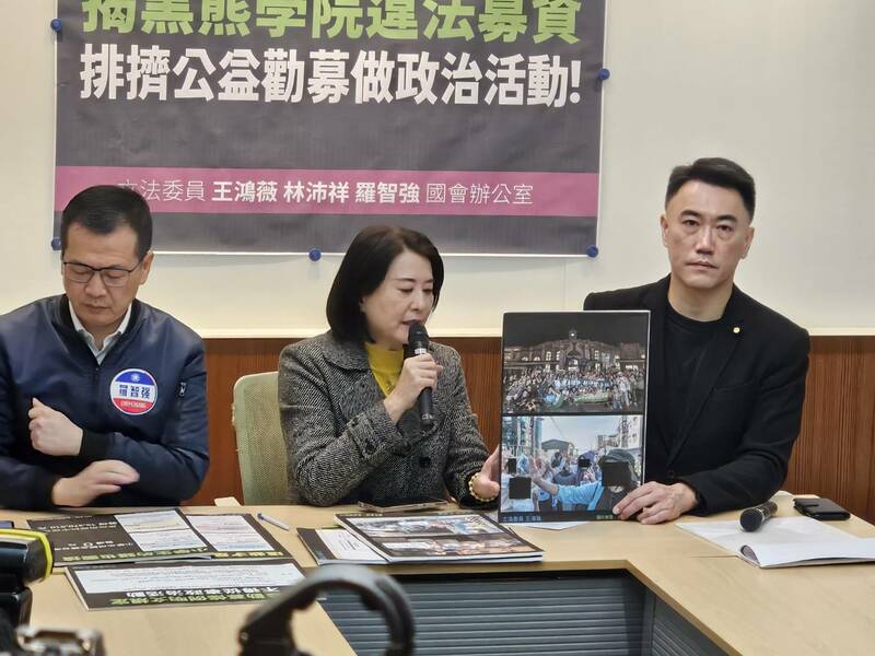 國民黨立委王鴻薇、羅智強、林沛祥6日召開記者會,揭露黑熊學院於「衛福部公益勸募平台」的「113年台灣民防教育推廣計畫」,恐違反《公益勸募條例》第3條,從事政治活動之團體或個人不得募款之規定。