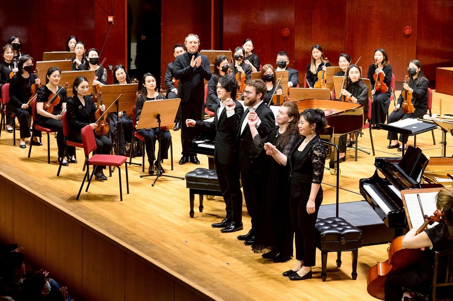 這是該母子檔2025年雙鋼琴系列國際巡演,展現優雅高超琴藝外,還有渾然天成的親子情感與默契,格外吸睛。尤其28日晚間與TSO (台北市立交響樂團)樂手們,合作詮釋巴爾托克(Bartók ,1881-1945)《雙鋼琴與打擊樂協奏曲,Sz.115》,堪稱經典,一新大家耳目。