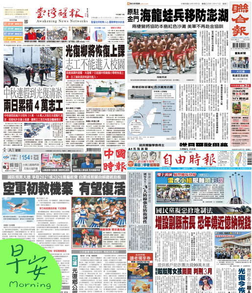 今日四大報頭條新聞請見附件圖片! 捐款成為醒報天使 由於熱心人與支持者的捐款,醒報的深度報導與客觀評論都是免費閱讀的,希望你也能加入「醒報天使」的行列,小額支持。我們會寄給您抵稅收據! 相關新聞 今日四大報頭版新聞!(20251008) 今日四大報頭版新聞!(20251003) 今日四大報頭版新聞!(20251001)