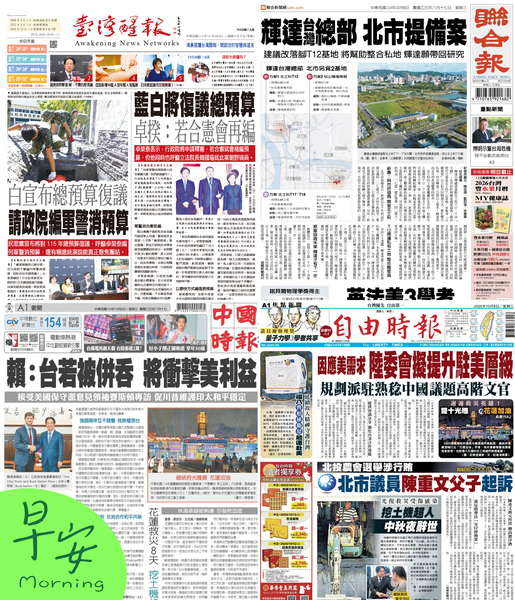 今日四大報頭條新聞請見附件圖片! 捐款成為醒報天使 由於熱心人與支持者的捐款,醒報的深度報導與客觀評論都是免費閱讀的,希望你也能加入「醒報天使」的行列,小額支持。我們會寄給您抵稅收據! 相關新聞 今日四大報頭版新聞!(20251007) 今日四大報頭版新聞!(20251003) 今日四大報頭版新聞!(20251001)
