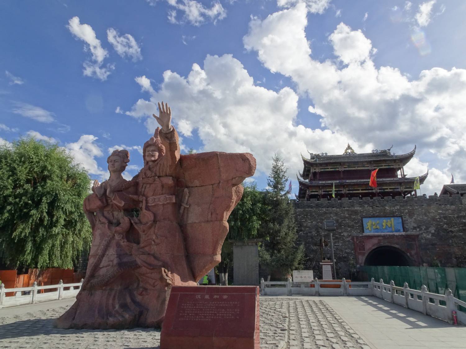 21世紀初,特地在松潘古城外興建文成公主和松贊干布伉儷的雕像(他倆另一座雕像在拉薩,已有1300年歷史),當遊客紛紛舉起手機相機合影時,讓人不免悲嘆,即使貴為公主,照樣要為了國家安定,遠赴邊疆跟異族聯姻,以換取兩國的和平。