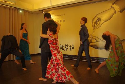 「3男3女以不停變化節奏的搖擺身體,彼此聚合、分散,漸漸有一位女性,漸漸發現自己趕不上拍子……」在2014年「台北詩歌節─為理想勞動」記者會中,蕭紫菡舞蹈劇場演出將於開幕儀式首演的舞作《畸形》精華版。蕭紫...