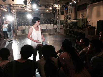 32位大學生在舞台上用繩索與木棍圍成一個拳擊台,將告白現場比喻成一場拳賽,當鐘聲響起,就學生們就演起現代學生戀愛時的總總搞笑狀況。這是果實藝術營的演員,24日為8個月的訓練成果進行彩排的畫面,創辦人張艾嘉...