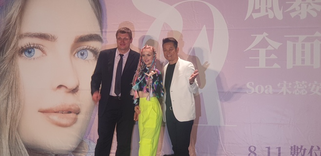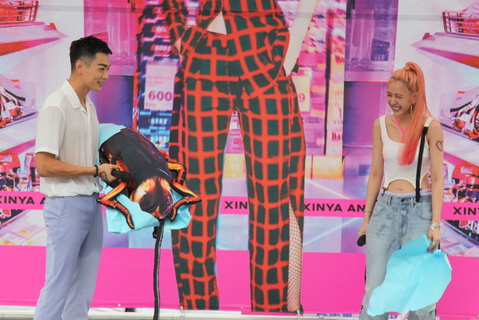 一身鮮紅衣裳,搭配著仙氣逼人的白雪紡紗裙,木曜四超玩主持人、「國民老婆」泱泱來到三創,與外貿協會秘書長葉明水一起推廣台灣精品。泱泱在場介紹了許多產品,並與現場粉絲玩起快問快答的活動,現場非常熱鬧。葉明水笑...