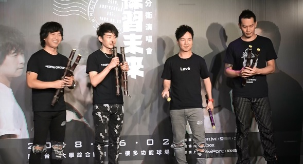身穿黑衣、帥氣的樂團「四分衛」12日首度開唱演唱會主題曲《一鏡到底》,搖滾的音樂震撼現場觀眾。他們也在「練習未來」演唱會記者會上,演唱有「台灣樂團國歌」之稱的搖滾歌曲《起來》,同時預告在演唱會前將發行新專...