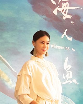 演員鍾瑤2日身穿白色上衣優雅出席台灣首部海底攝影電視電影《海。人。魚》首播記者會,飾演人魚的她表示,「在水底下拍攝一天起碼拍攝8小時,人體承受低溫3小時就已經很緊繃,所以我每天上岸都發燒,需要調適體溫」,...