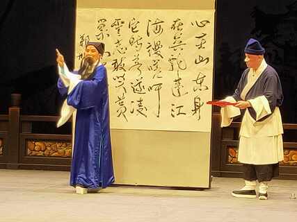 「小二,勞煩好酒一壺、素菜兩碟!」「好勒!」「您要請我喫酒?」由京劇演員劉化蒂主演的宋江一身羽扇綸巾、一縷長髯,身著青衿,正在潯陽樓與酒保對飲談事、賦詩作興,不過在古典京劇內也穿插「小道消息」、「炒魷魚」...