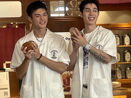 身高都超過180公分的男星詹懷雲與邱以太17日穿上飲料店制服,手拿飲料杯來回搖晃,親手為粉絲製作飲料!兩名演員為了宣傳電影《成功補習班》到萬波擔任一日店長。數十名粉絲排隊等待飲料,粉絲興奮高喊:「為了你來...