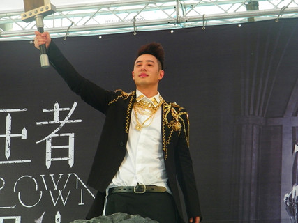 一身王子裝扮、出道十年的「潘帥」潘瑋柏,近日發表個人第10張專輯《王者丑生》,25日頂著大太陽在西門町與歌迷見面,他出場方式帥氣十足,衝破「銅牆鐵壁」的背景穿牆而出,引起粉絲們尖叫不已。模仿潘瑋柏聞名的藝...