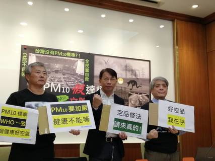 台灣對PM10的管制標準竟然20年不變,甚至落後敘利亞!台灣健康空氣行動聯盟9日指出,PM10的標準太高(年均值65 μg/m3),然而根據國外研究,光是短期暴露在40μg/m3便會造成死亡率增加,期望環...