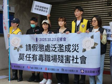 長榮空服員無法請假而過勞猝逝的新聞,讓同樣高工時、高壓力的醫療業也不滿發聲了!醫療工會23日與白委陳昭姿召開記者會,呼籲事假以外假別不能列為怠惰考核項目、勞動部與衛福部應盤點醫療院所差勤制度、修法調整請假...